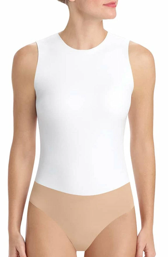 The Commando Faux Leather Deep-V Bodysuit BDS014 is a bodysuit that is so sleek and chic you can pair it with everything in your closet. Fit-tested by real women, this bodysuit features luxury-technical fabrication, raw-cut edges, smoothing properties and snap closure at bottom.