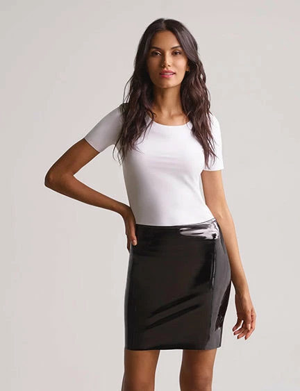 Exclusively online only, for a limited time. Commando’s faux patent leather mini skirt is designed with high-shine faux patent fabric and their signature internal waistband for a sleek, smoothing look.