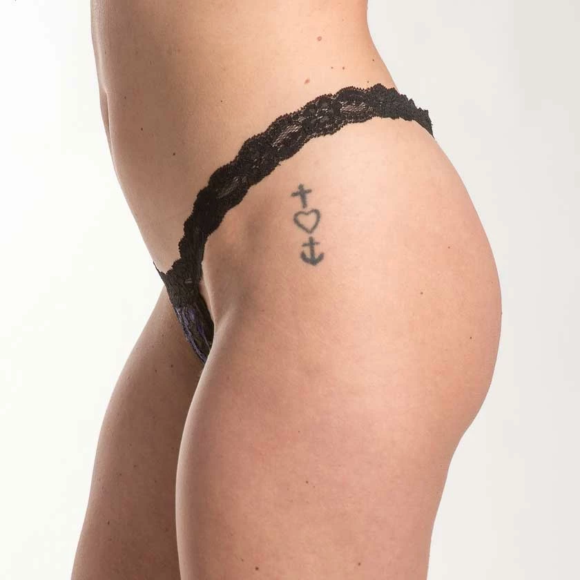The Hanky Panky Plumage Lace Open G-String 9Q1304 is a crotchless g-string made of Hanky Panky’s feather patterned cross-dyed lace! It has a satin bow detail on the front opening.