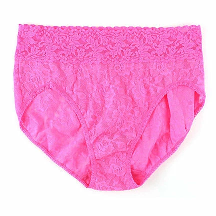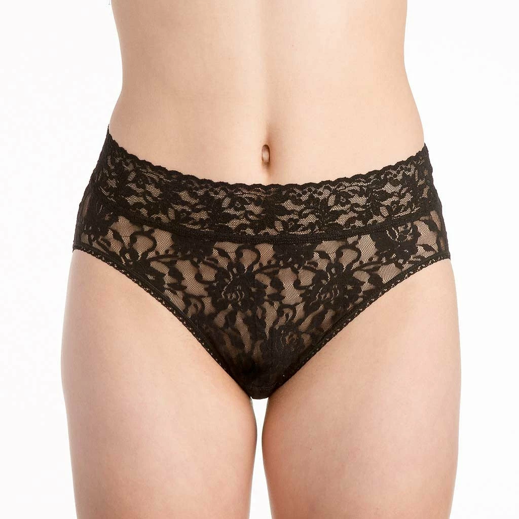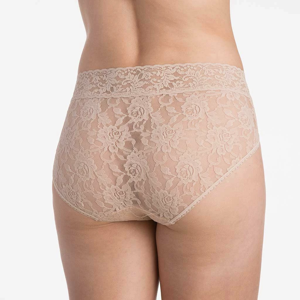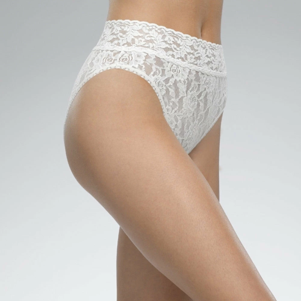 The Hanky Panky Lace French Brief 461 features retro chic styling. A classic, high-rise panty with full back coverage and high-cut legs. Available in sizes XS-S-M-L-XL.