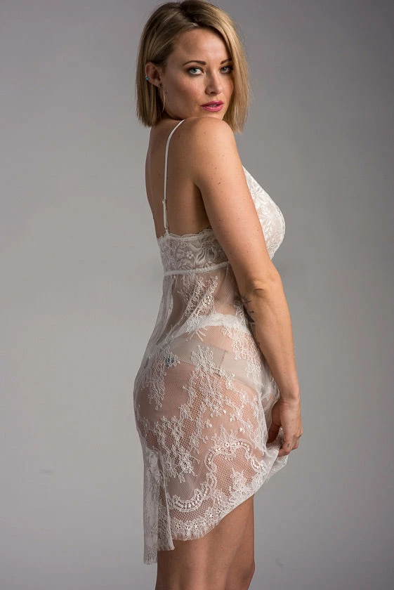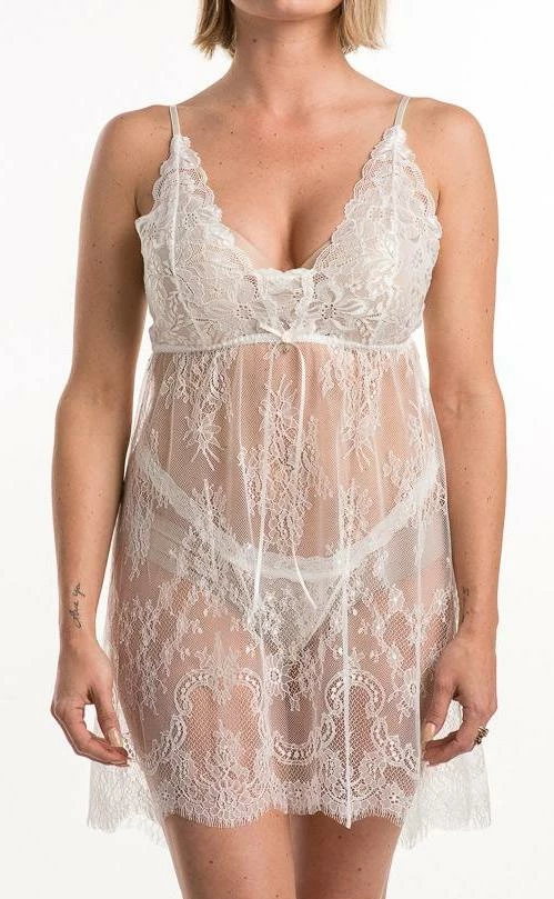 The Hanky Panky Hp Victoria Chemise 945901 is a sheer negligee made of Chantilly-style lace with a fishtail hem. Its straps are adjustable and comes with a matching g-string.