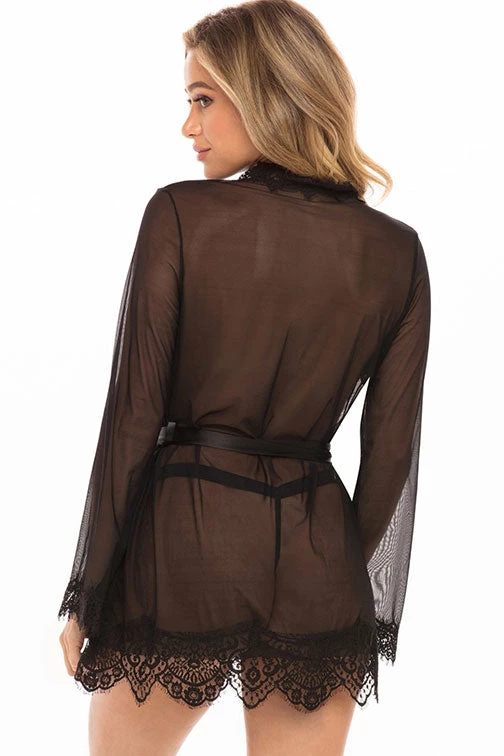 Alluring and sophisticated, the Provence Sheer Mesh & Lace Robe from OH LÀ LÀ CHÉRI is the perfect loungewear piece. This robe is crafted with the softest sheer mesh and beautiful scalloped lace and features a double-faced satin ribbon designed to be worn tied at the waist or worn open.