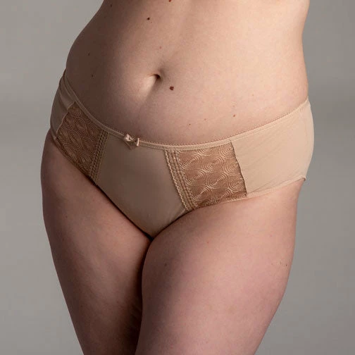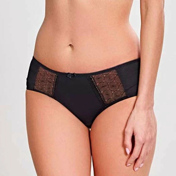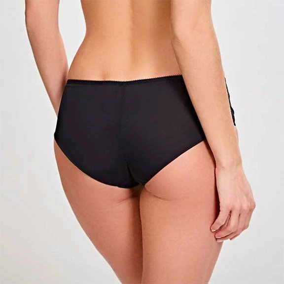 The Panache Cari Brief 7963Â has an embroidered front leg insert, double layer mesh front and folded back leg panels for minimal VPL.