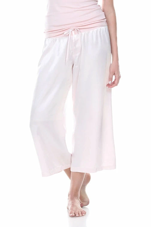 The PJ Harlow Jolie Satin Cropped Capri Pant P52 is made of a whisper-soft, lustrous satin. These cropped palazzo sleepwear pants are lightweight, drape beautifully and feel buttery soft against the skin.Â