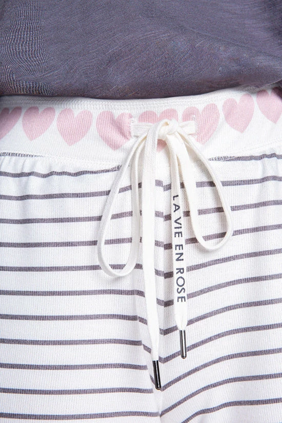 Striped & cozy. The PJ Salvage La Vie En Rose Short RELVS in ivory is a sweet stripe lounge short with signature heart printed waistband. A perfect sleep short for the season.