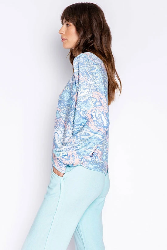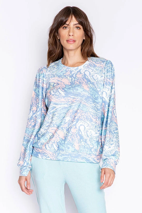 Like mixed swirls of all your favorite ice cream flavors?  The PJ Salvage Molten Marble Long Sleeve Top REMMLS is just that! We love the blouse-like details on this top, from the gathered cuffs to the back hem slit.
