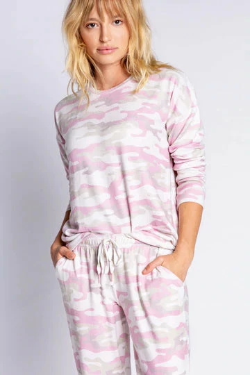 When the look calls for head-to-toe camo, in the most understated way. We love the pale sand & pink shades of this printed easy-fit lounge top.