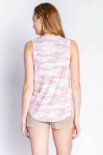 Easy does it tank top. Add a little camo-style to white denim or khaki’s with this high-neck relaxed fit tank.