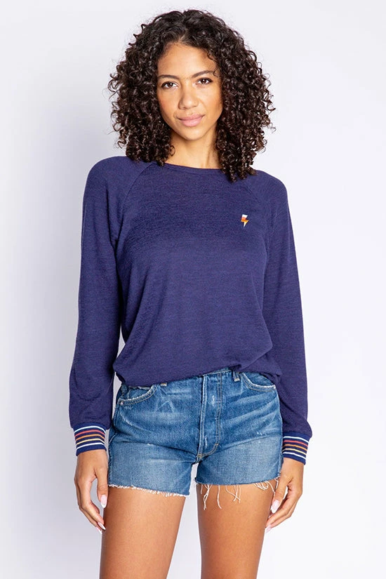 Sometimes all it takes is a perfectly soft pullover, with just enough details. The PJ Salvage Stripe Rite L-S Top RESRLS is a navy pullover top with lightning bolt embroidery, and the best of striped cuffs.