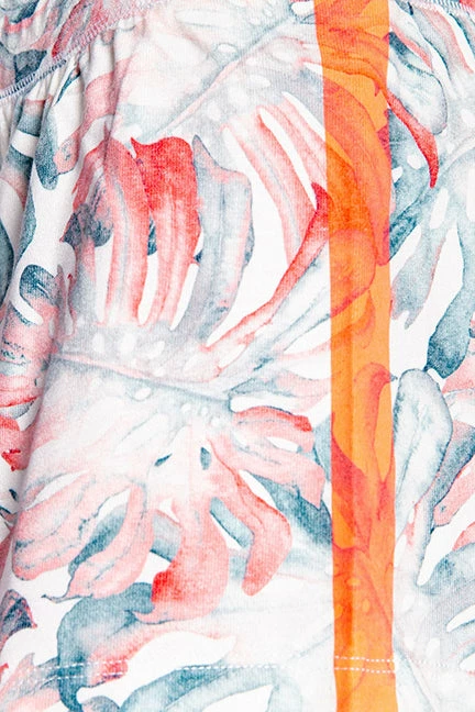Get shorty style. PJ Salvage’s tropical print short has fun neon printed side stripes and a cute back pocket.