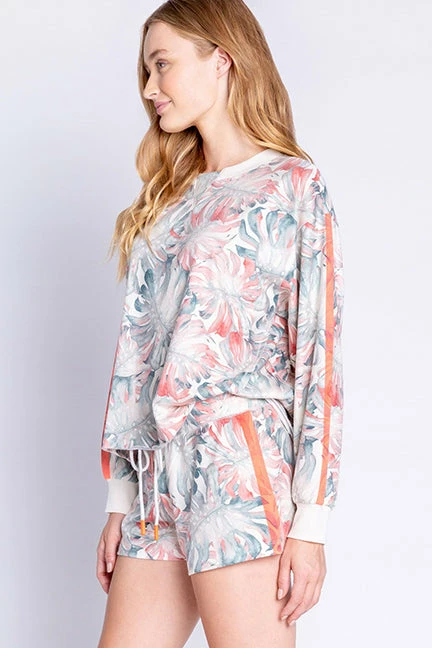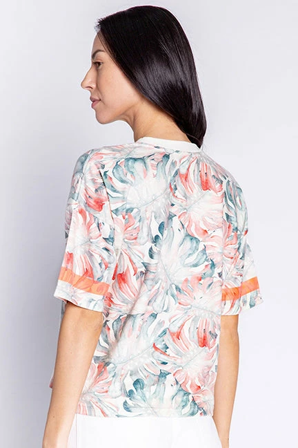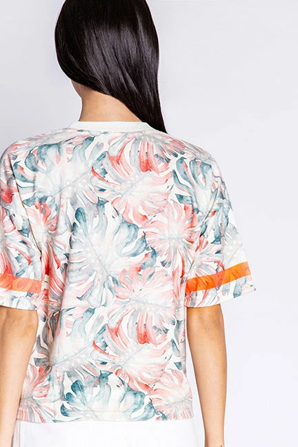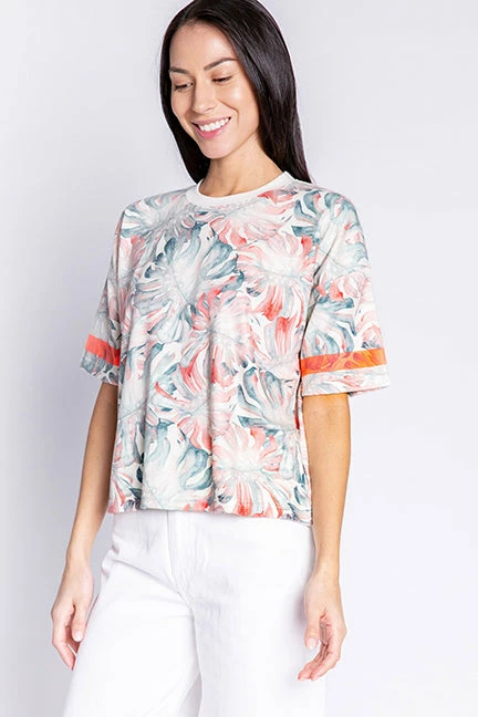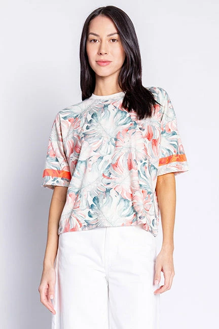All the cool-girl vibes in PJ Salvage’s relaxed fit tee-top in an exotic plant-print – the perfect top for denim or matching shorts for the ultimate spring-summer set.