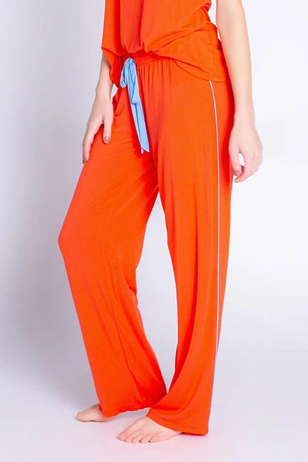 Get lounging in this smooth modal jersey pajama pant with pop-color tuxedo piping at sides and ribon tie-waist.