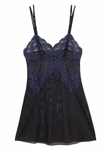 Romantic scroll lace floats over your body while the seamed cups give you a natural shape for a pretty look at night, during your leisure time, or anytime.