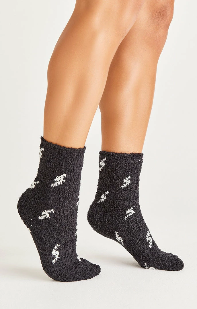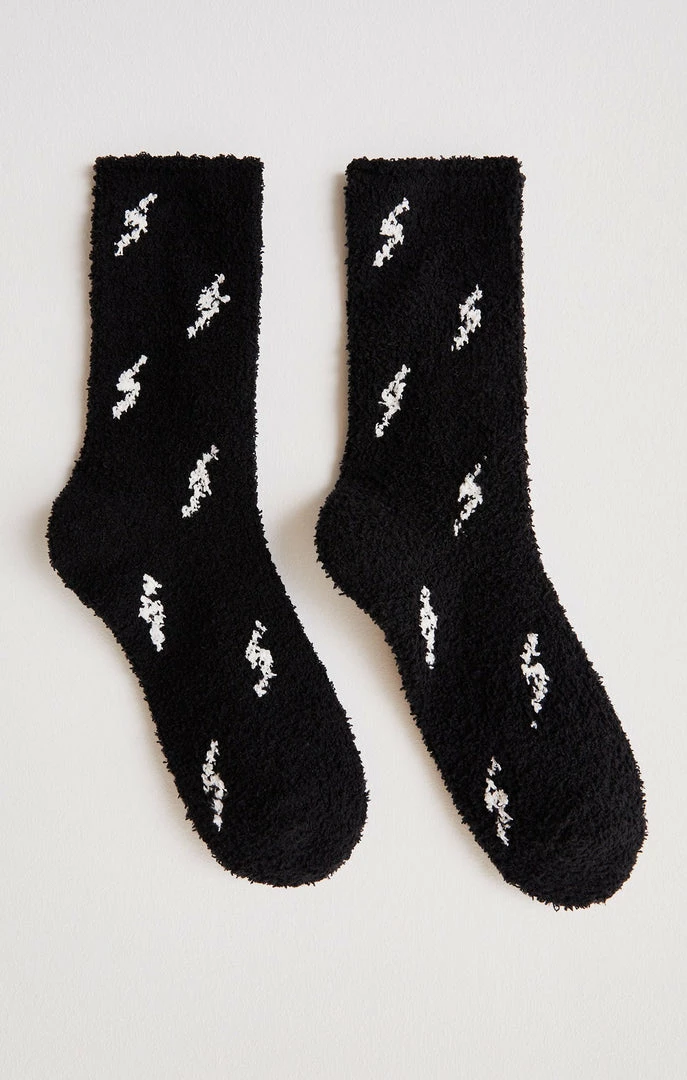 The Bolt Plush Socks feature a small lightning bolt in washed black and are the perfect accessory to any outfit.