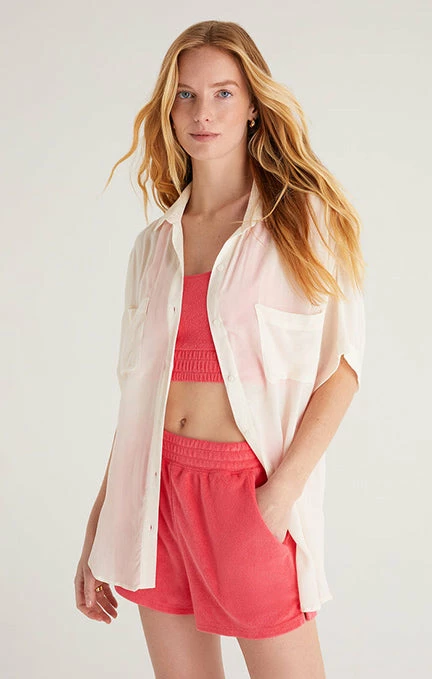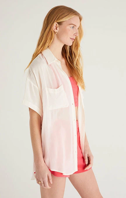 Oversized shirts are one of the ‘it’ styles of the season, and Z Lounge’s Clearwater Crinkle Shirt makes a versatile layer. With its collared, button-front design (with pockets) that can be worn open, buttoned or knotted, this shirt is your new travel essential. The breezy rayon crinkle fabric will keep you cool on even the hottest days. Complete your look and wear with any of Z Lounge’s resort sets!Â