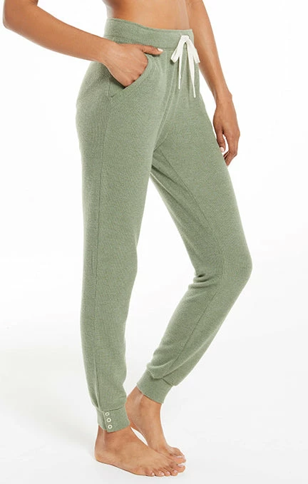 The Homey Rib Jogger is as comfy as it looks! Made from Z Supply’s softly textured, plush brushed rib knit, this jogger features an elastic drawstring waistband with pockets and unique snap details at the bottom cuffs.