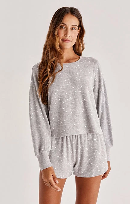 We’re dreaming of starry nights! The Lina Star LS Top is made of Z Lounge’s ultra soft Brushed Sweater Knit fabric and features a pretty allover star print. With a cropped, boxy fit, she’ll love pairing it with any of Z Lounge’s solid joggers or shorts.