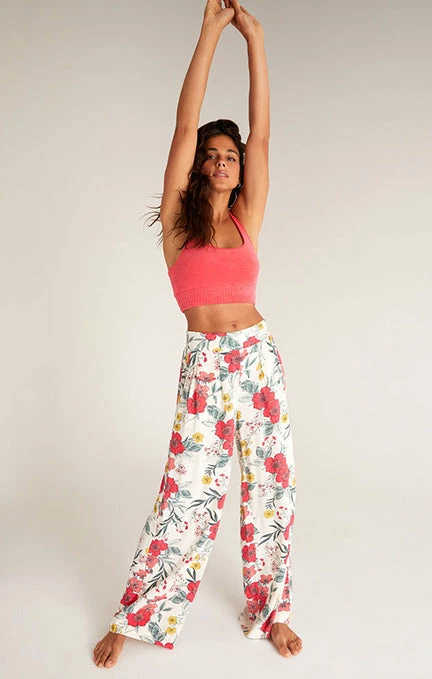 You will love the Seaside Floral Pant! Featuring an elastic waistband, pockets, and wide leg design, this pant combines vintage florals with a timeless, relaxed fit and matches perfectly with the Resort Floral Shirt for that trending crop top look. You can also match it back to one of Z Lounge’s other resort tops. Their rayon challis is airy and perfect for sunny adventures and makes this is style a standout must-have.