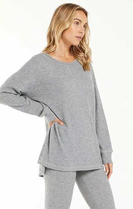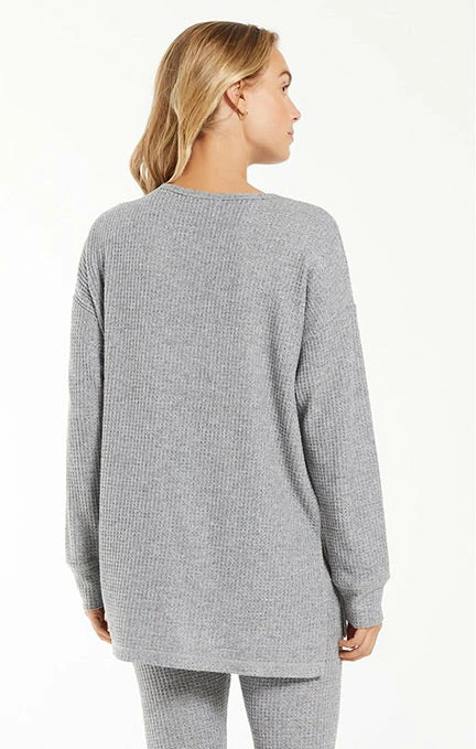 The Self Love Thermal Long Sleeve Tunic is the perfect top to cozy up in. Its longer length looks great over Z Lounge’s Lover Thermal Leggings. Available in Z Lounge brushed rayon poly thermal in heather grey. Just add cozy socks! Fabric Content: 48% Rayon 48% Polyester 4% Spandex