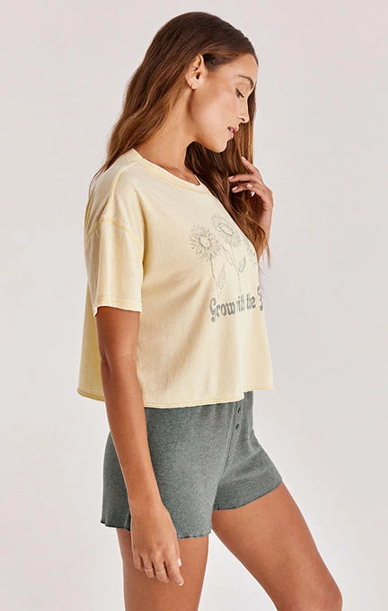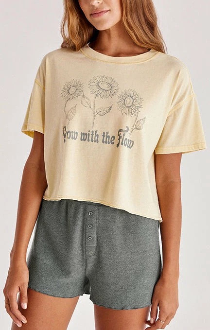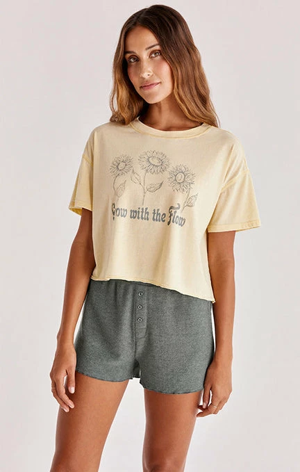 “Take it easy and just “”Grow with the Flow.”” Z Lounge’s Vintage Sunflower Sleep Tee is made using their soft cotton/poly jersey fabric and features a boxy, cropped design and the words “”Grow with the Flow”” screen printed on the front, with sunflowers. So good with denim, she’ll want to have this on-hand, all season Available in Sunflower. Fabric Content: 60% Cotton, 40% Poly Jersey”