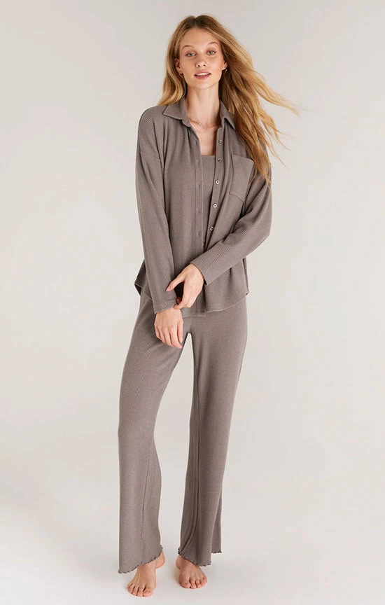 Need something for those cooler fall nights? We’ve got you covered with the Z Lounge Button Up Rib Long Sleeve Top ZLT223381. Perfect for sleeping or lounging, this top features a more fitted silhouette. Pair the Easy Peezy Rib Tank and Lounging Around Rib Pant with this top to create an easy, coordinated look with each piece standing alone.