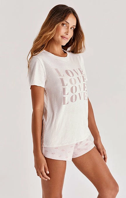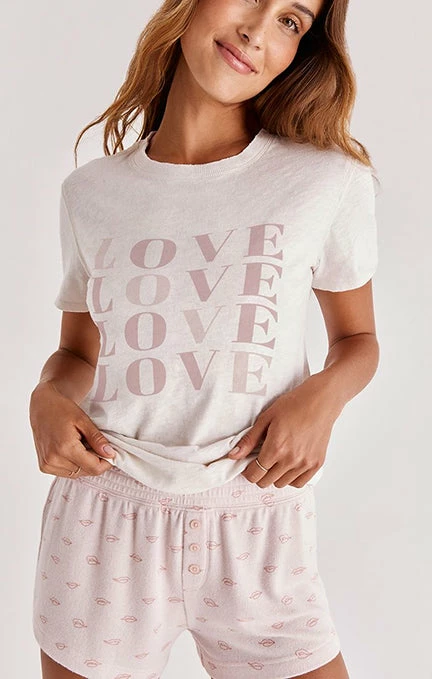 Love is in the air with Z Lounge’s Easy Love Tee. This Sandstone color tee features a crew neckline, short sleeves and Love screen print on the front, making this a great choice. Fabric Content: 100% Cotton